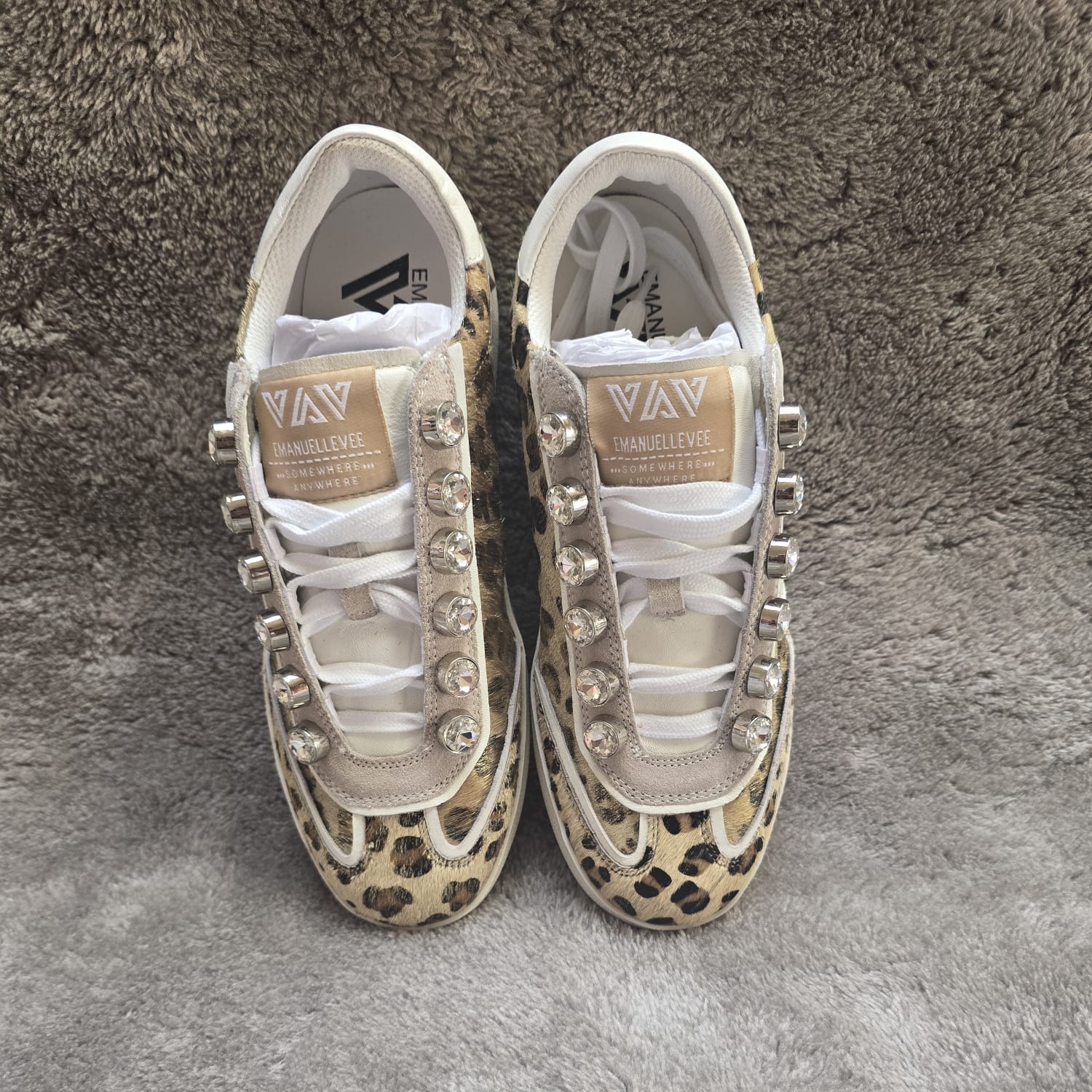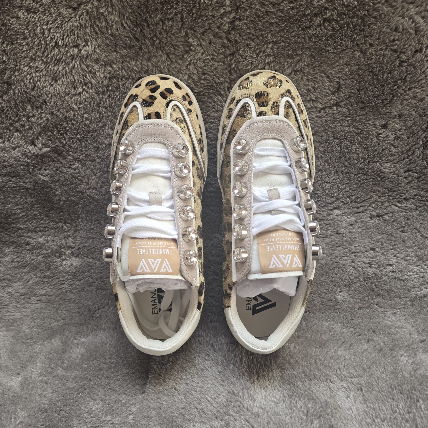 Os ténis Emanuelle Vee são a fusão perfeita entre conforto e sofisticação. Com um design exclusivo em animal print, estes ténis destacam-se pelos detalhes em camurça e aplicações de pedras brilhantes, que acrescentam um toque de glamour e originalidade ao visual.